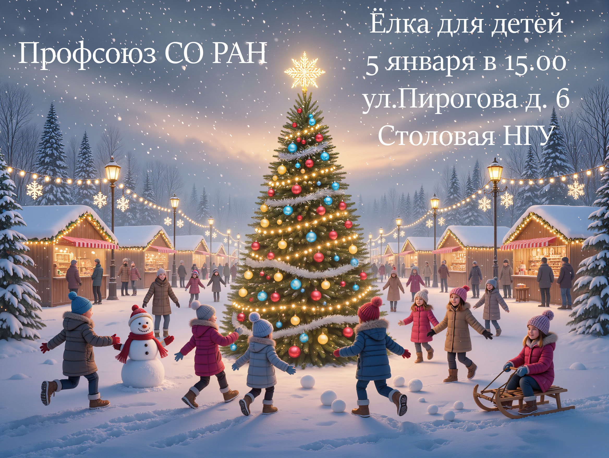 Профсоюз СО РАН проводит 5 января 2026 г.новогоднюю елку для детей и внуков членов профсоюза.