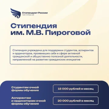 Министерство науки и высшего образования Российской Федерации объявляет о старте конкурсного отбора на получение стипендии имени М.В. Пироговой на 2025/2026 учебный год.